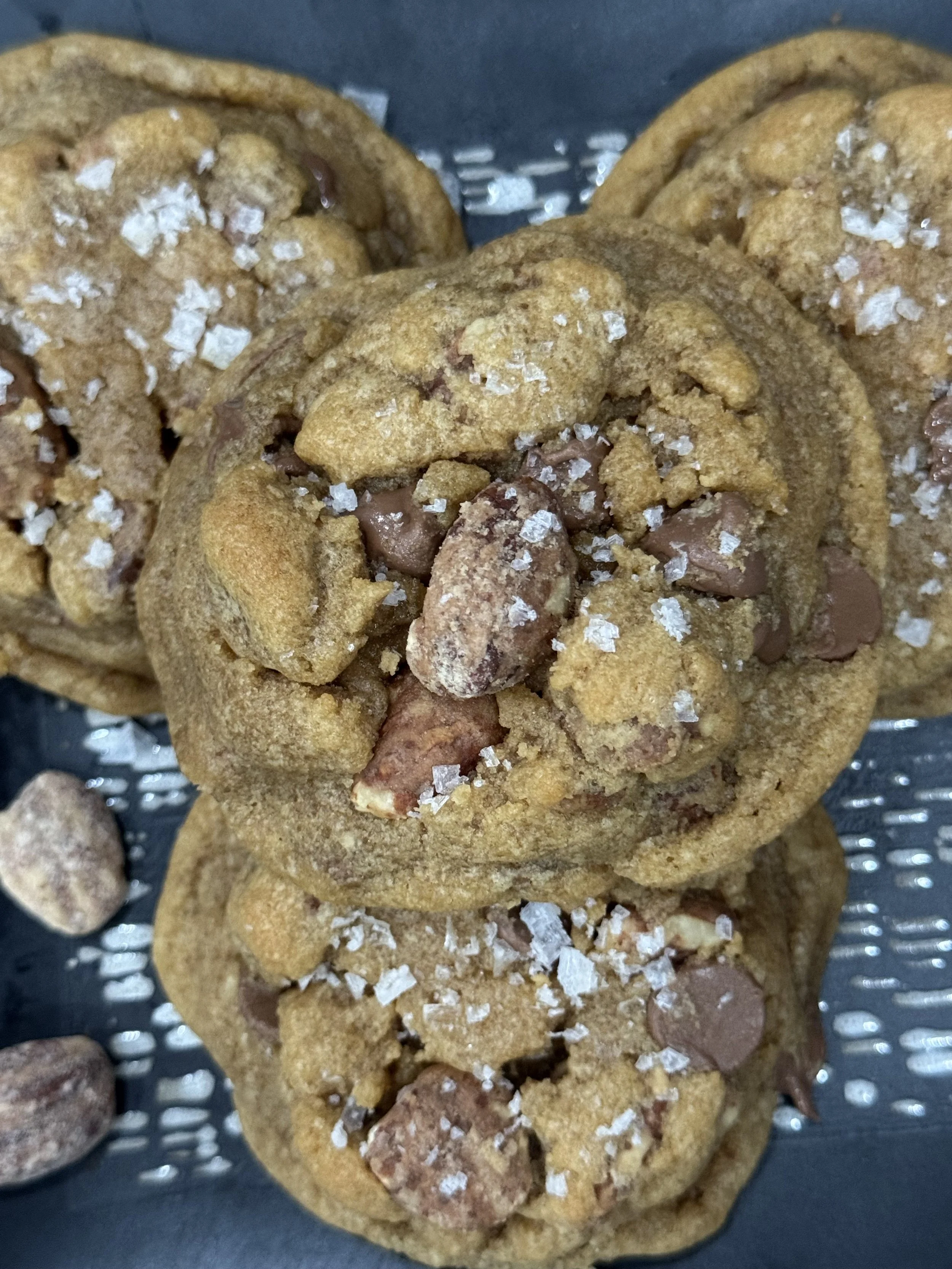 A dangerously good dark chocolate cookie with creamy white chocolate chips and a ✨sprinkle ✨ of sea salt