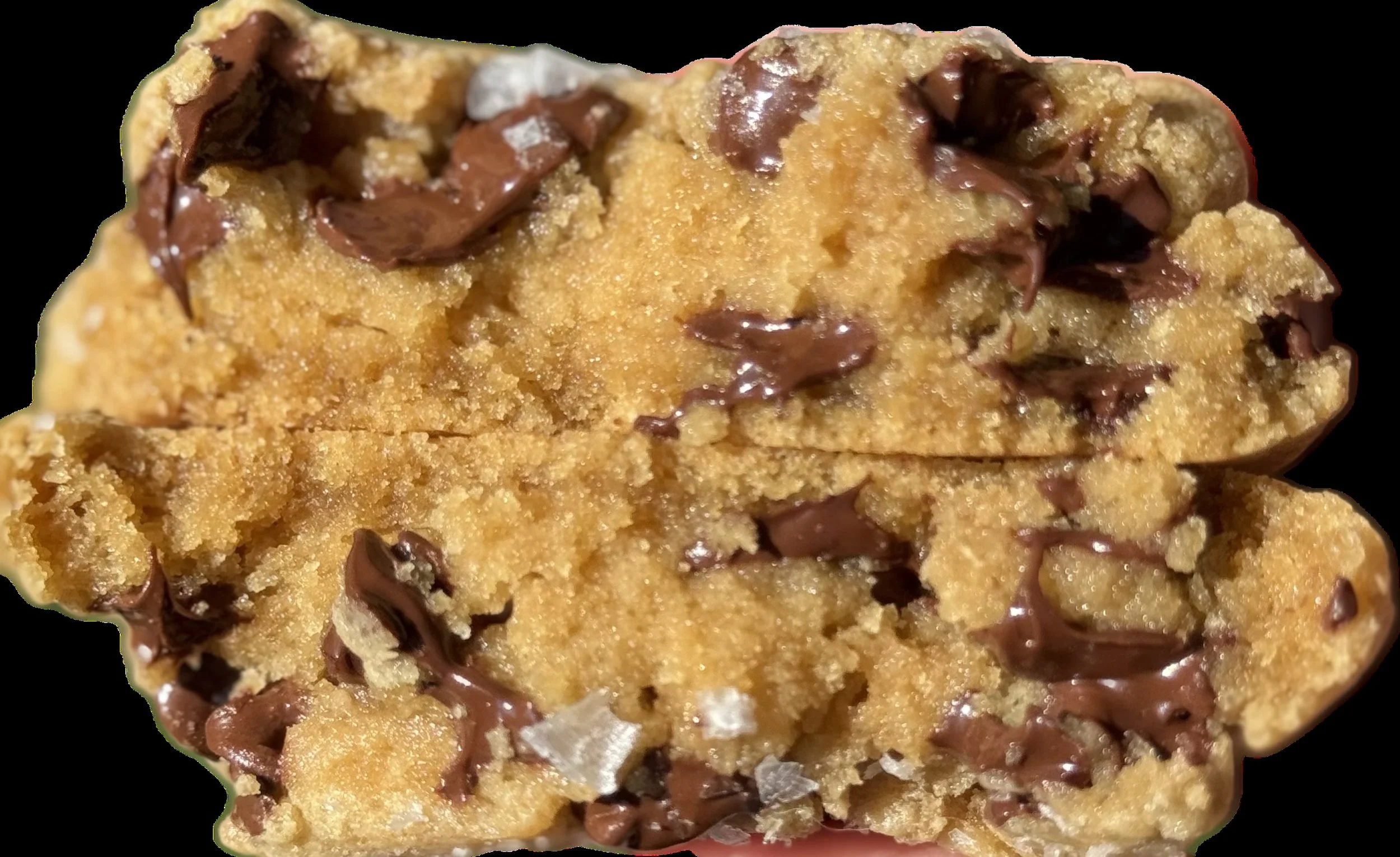INGREDIENTS:FLOUR (UNBLEACHED ENRICHED WHEAT FLOUR (WHEAT FLOUR, REDUCED IRON, NIACIN, THIAMINE MONONITRATE, RIBOFLAVIN, FOLIC ACID), MICROBIAL ENZYME), GRASS-FED BUTTER (PASTEURIZED CREAM (MILK), SALT), ORGANIC CHOCOLATE CHIPS(ORGANIC CHOCOLATE LIQUOR, ORGANIC CANE SUGAR, ORGANIC COCOA BUTTER, ORGANIC VANILLA EXTRACT), ORGANIC WHITE CANE SUGAR, ORGANIC BROWN SUGAR, ORGANIC EGGS, ORGANIC VANILLA EXTRACT(ORGANIC VANILLA BEAN EXTRACTIVES IN WATER, ORGANIC ALCOHOL.), SEA SALT, BAKING SODA (SODIUM BICARBONATE)